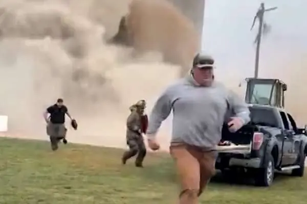 ویدیویی در شبکههای اجتماعی منتشر شده که لحظه فرو ریختن یک سیلو بتنی بزرگ غلات در مارتینتون، ایلینوی، و فرار مردم را نشان میدهد.