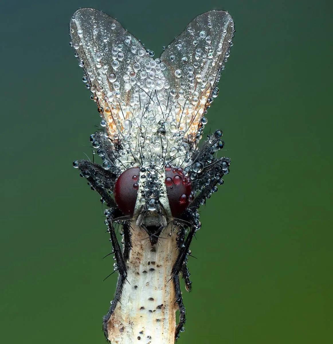 عکاسی ماکرو حرفه ای از حشرات بلافاصله پس از بارندگی، یک تجربه بصری منحصربهفرد برای هنرمندان به شمار میرود. وجود قطرات آب روی بدن این موجودات کوچک، ظرافتهای زیباییشناختی آنها را دوچندان میکند.