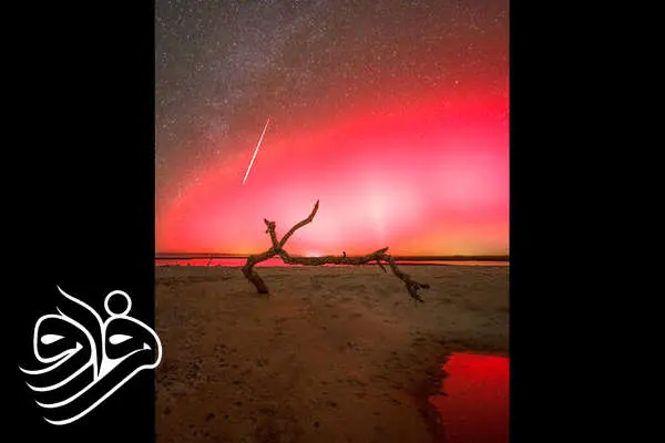 شفقهای قطبی برای اولین بار به آسمان فلوریدا رسیدند؛ تصویری خیرهکننده از نور قرمزرنگ شفق شمالی بر فراز ساحل در شب پرستاره ثبت شد.