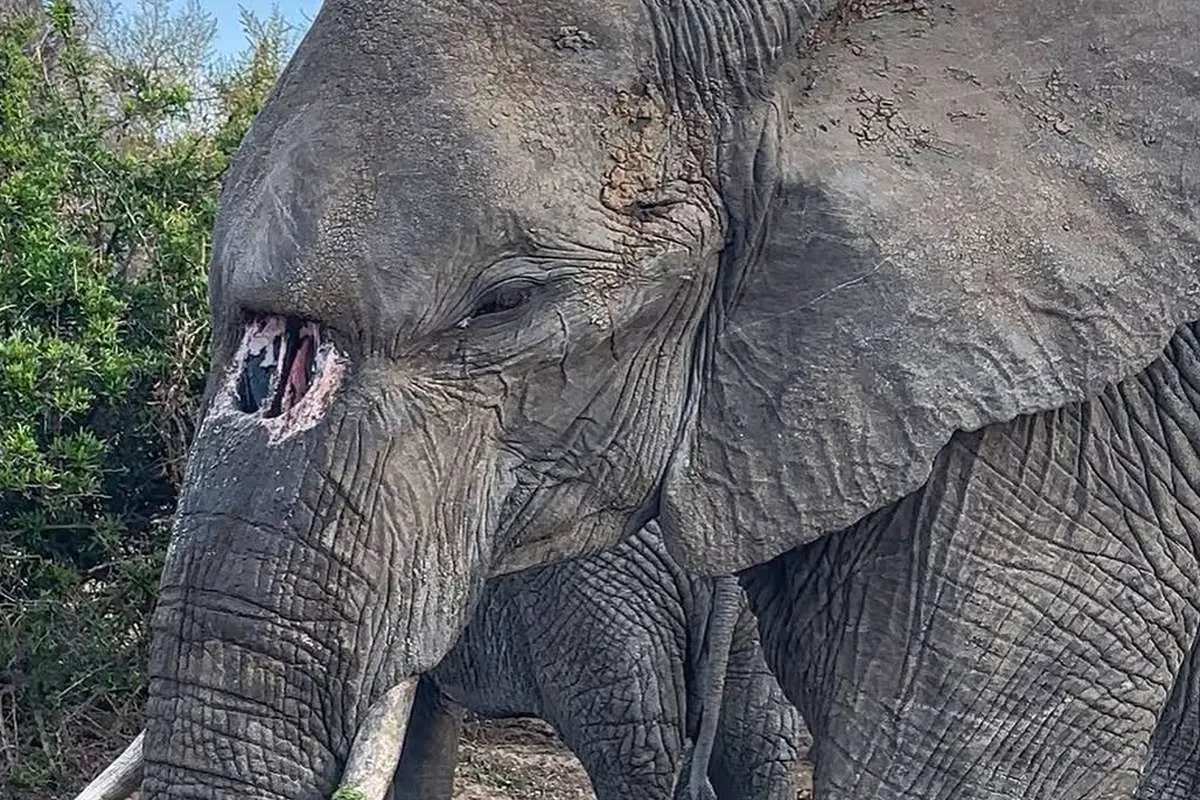 مشهورترین فیل پارک کروگر با سوراخ مادرزادی در خرطوم