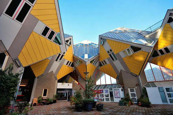 پیت بلوم، معمار ساختارگرای هلندی، با طرح خانه های مکعبی خود در پی تحقق رویای «بام شهری» بود. او در این پروژه، که اکنون به یکی از نمادهای شهر روتردام تبدیل شده، تلاش کرد یک روستای متراکم و آویزان را بر فراز شهر بنا کند تا زندگی مدرن شهری را با حس همبستگی محلی ترکیب نماید.