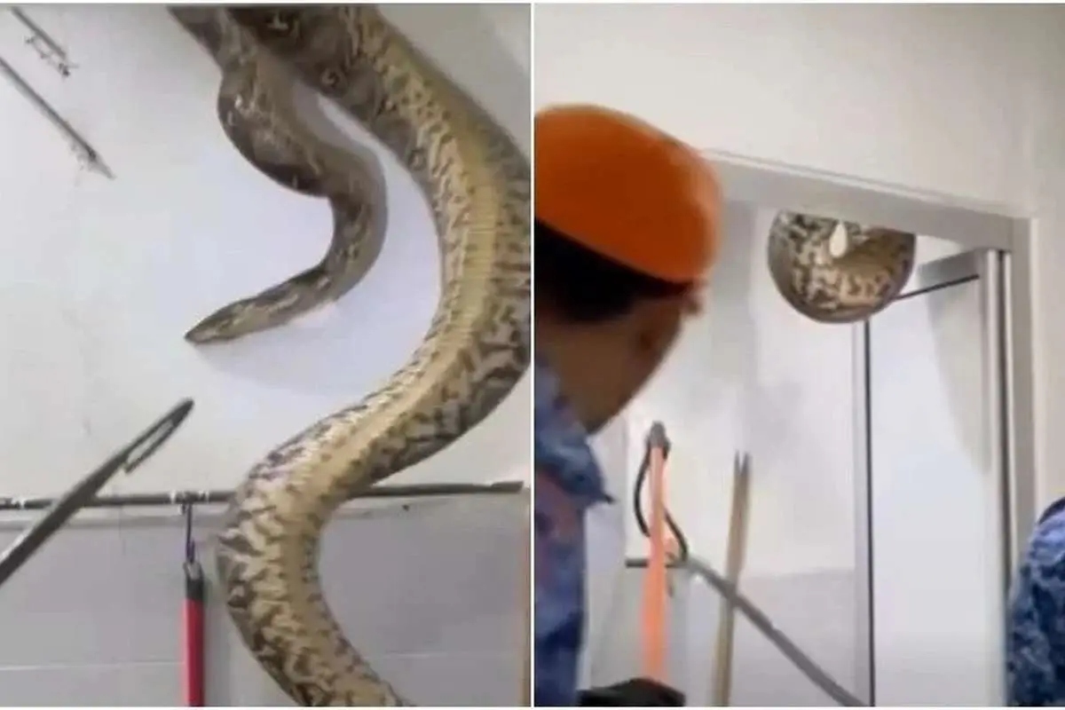 ظاهر شدن یک مار غول پیکر در سقف حمام اهالی یک خانه را وحشتزده کرد.