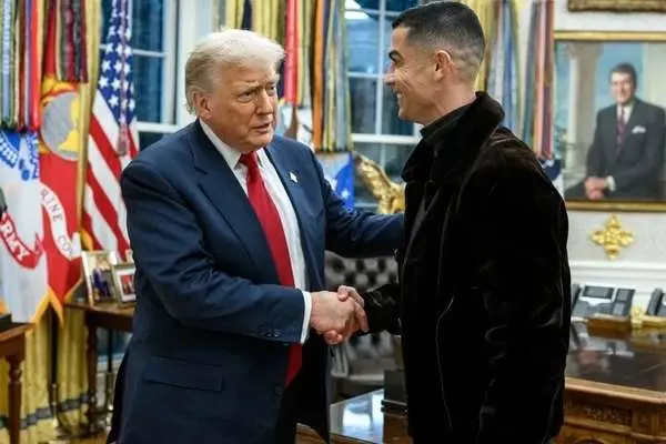 در ادامه نیز ستاره پرتغالی فوتبال جهان به اتاق بیضی رفت و در یکی از نمادینترین بخشهای کاخ ریاستجمهوری آمریکا، عکس یادگاری مشترکی با ترامپ ثبت شد.