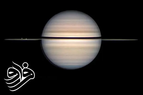 عکس روز ناسا گذر دو قمر یخی زحل را از برابر حلقههای آن به نمایش میگذارد.