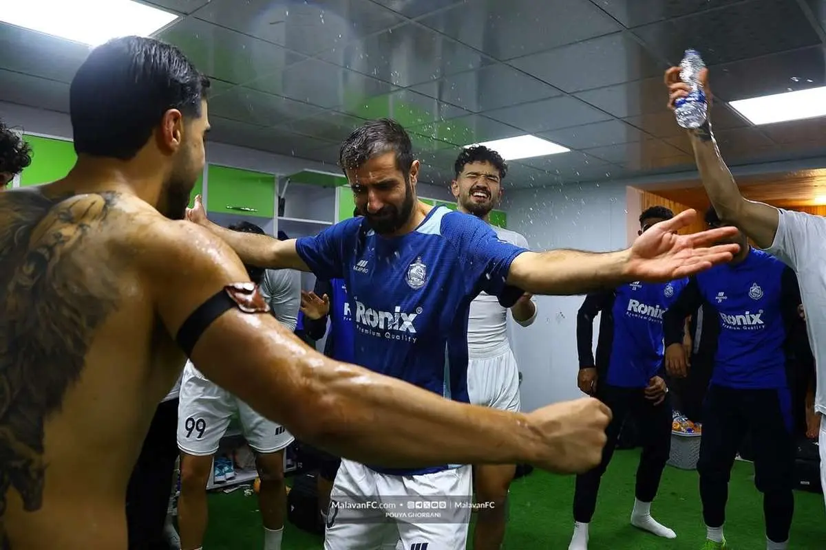 جشن صعود در رختکن؛ بازیکنان ملوان با رقص شادی کردند