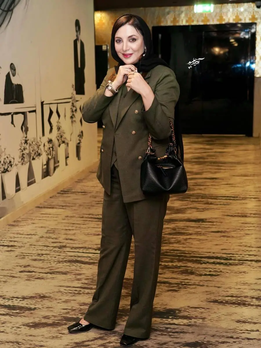 استایل شیک «رویا میرعلمی» با کتوشلوار سبز تیره در اکران «سینما شهر قصه»
