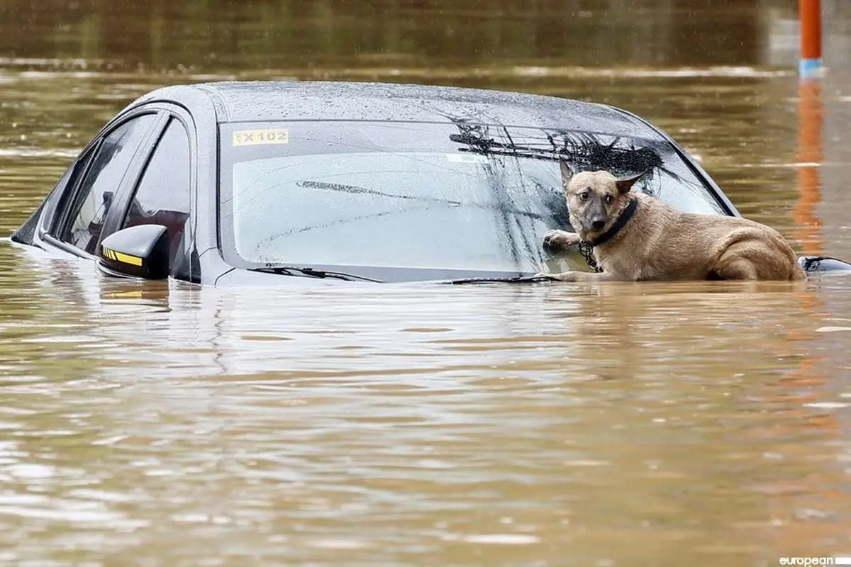 ببینید؛ نجات یک سگ گرفتار در میان سیلاب و طوفان