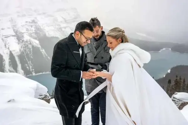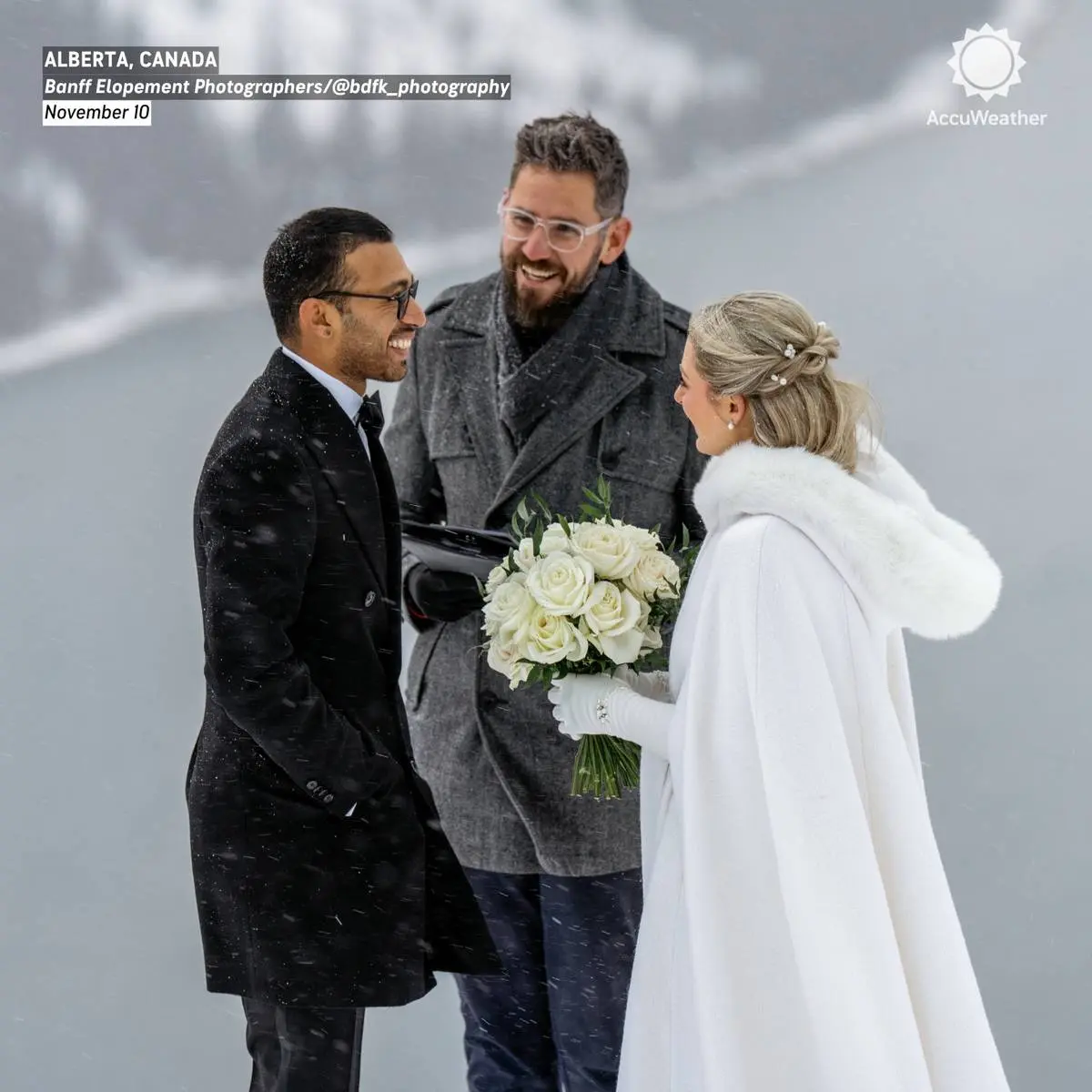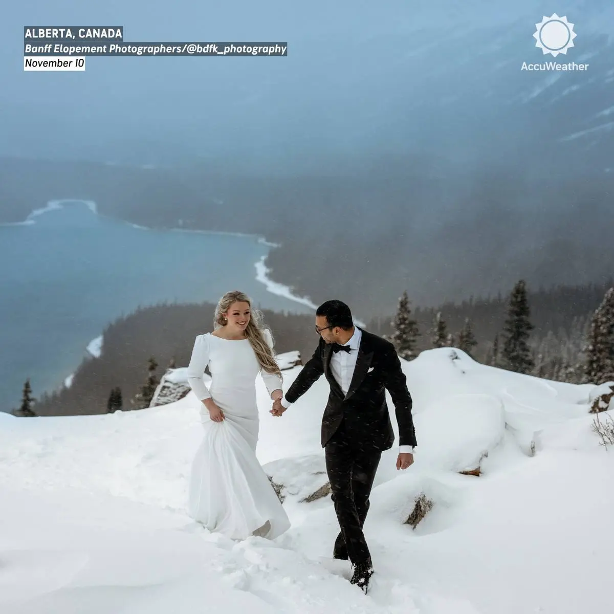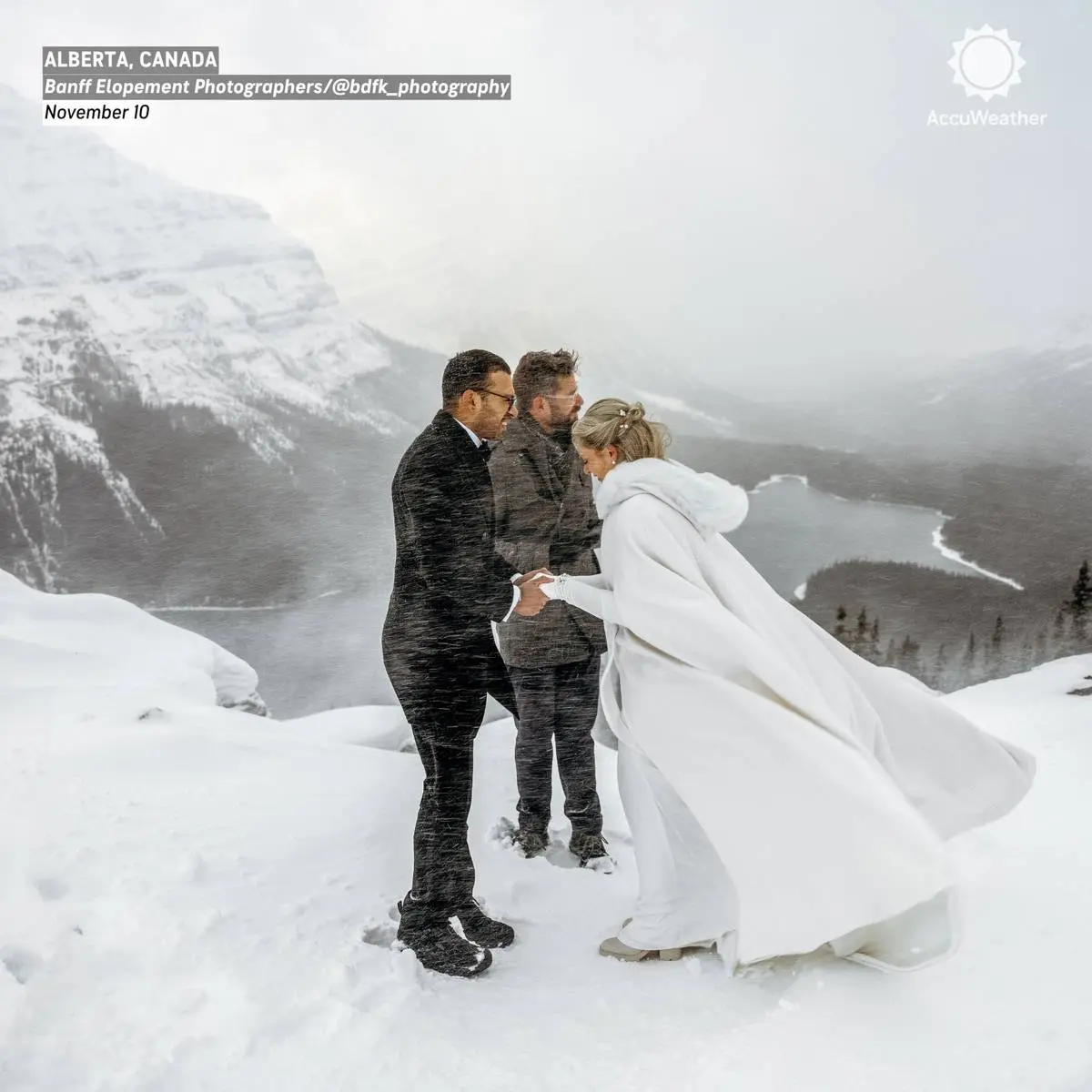 یک زوج ماجراجو در پارک ملی بنف کانادا، در میان بادهای شدید و کولاک چشمگیر، پیمان ازدواج خود را در منظرهای خیرهکننده و زمستانی بستند.