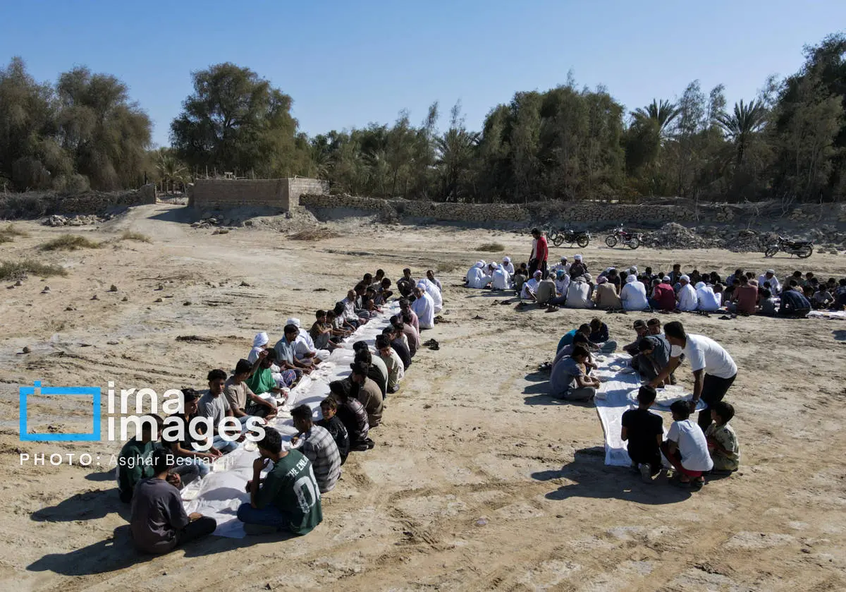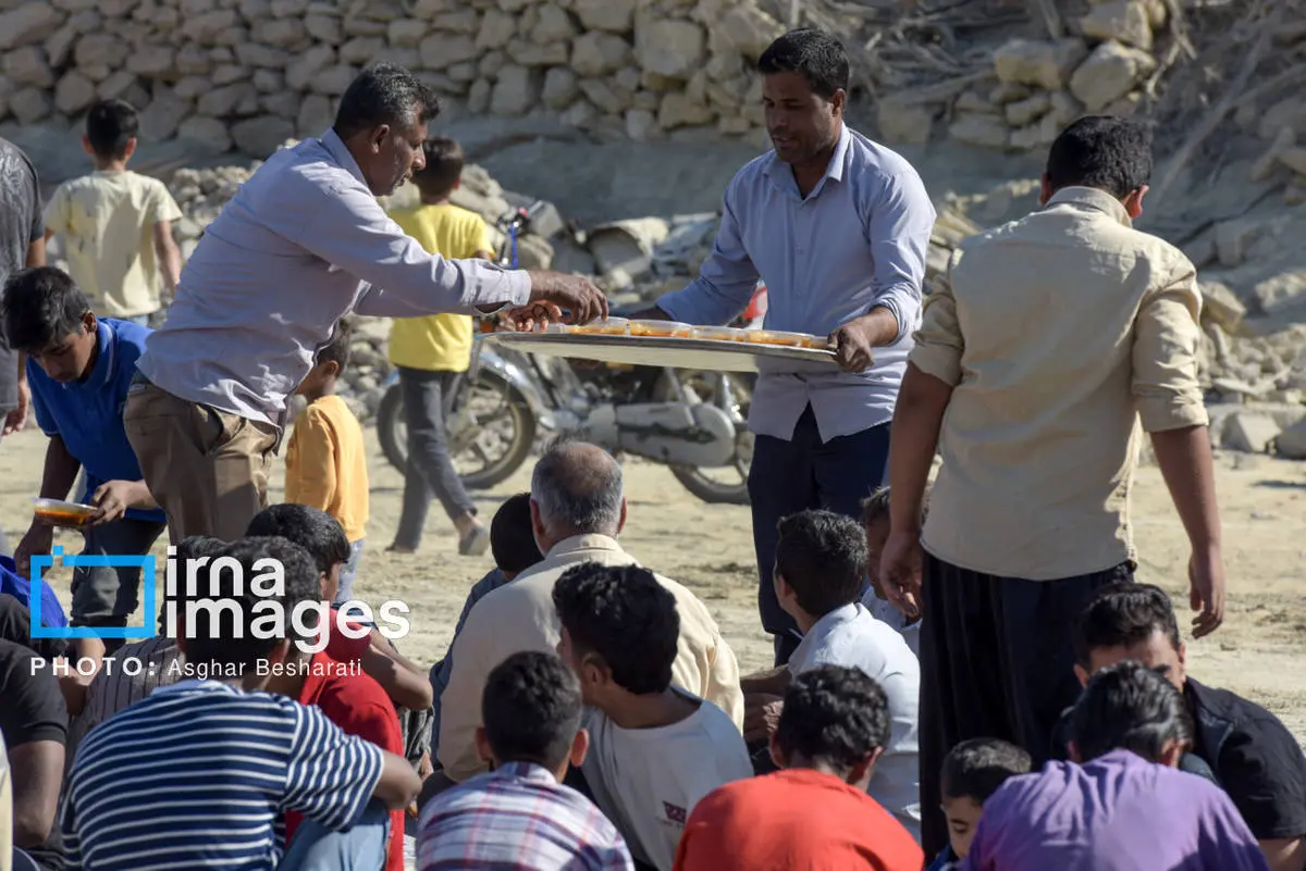 مراسم نذری، خیرات و دعا خوانی برای باران و به مناسبت بیستمین سالگرد زلزله قشم، صبح جمعه (۷ آذر ۱۴۰۴) در روستای گورزینِ جزیره قشم برگزار شد.