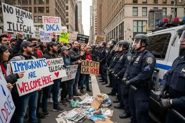به گزارش فرارو به نقل از الحدث، در این تصاویر اعتراضات علیه پلیس مهاجرت و گمرک در منهتن نیویورک به نمایش درآمده؛ بهطوری که جمعیت فراوانی تلاش دارند تا مانع حمله احتمالی پلیس به اداره مهاجرت شوند و در همین میان نیز شماری بازداشت شدند.