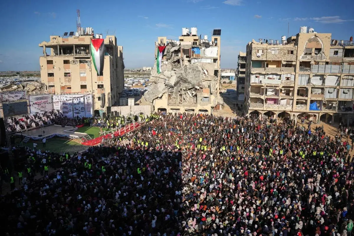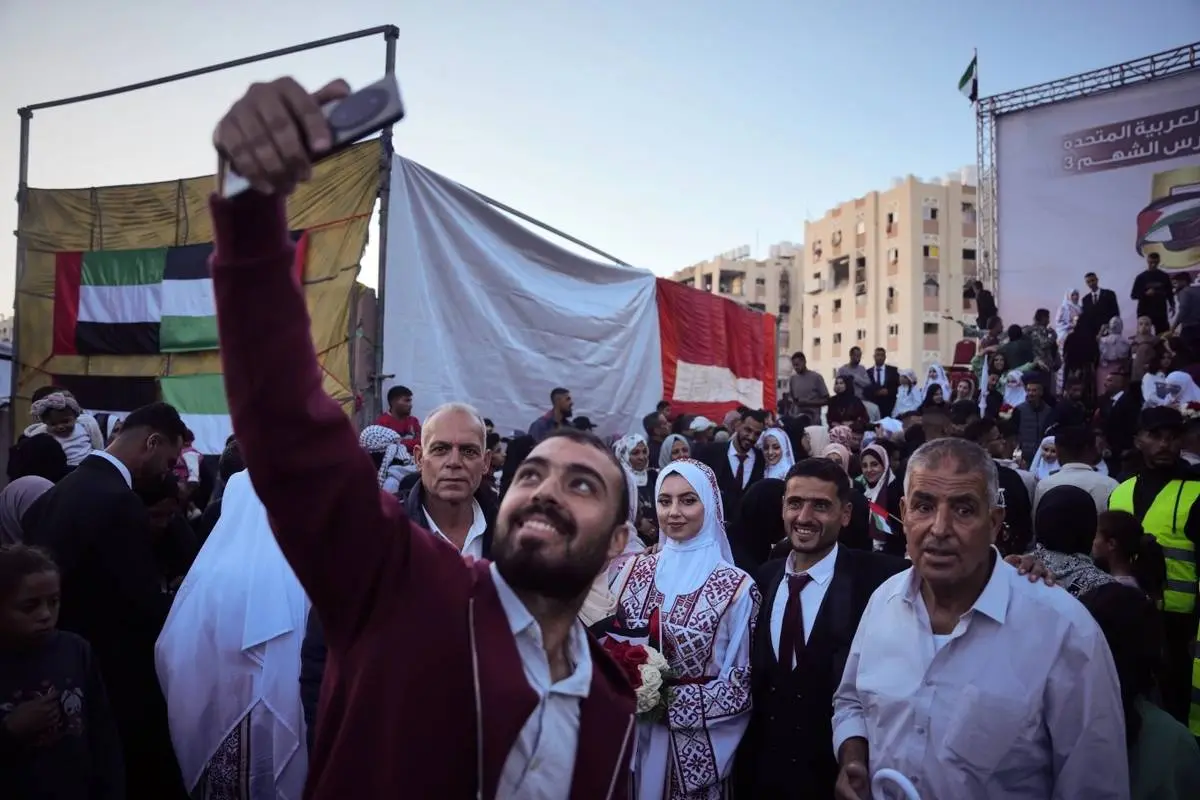 فلسطینیها روز سهشنبه در میان خرابههای جنوب غزه گرد هم آمدند تا ازدواج گروهی بیش از ۵۰ زوج را جشن بگیرند؛ لحظهای نادر از امید پس از دو سال ویرانی، مرگ و درگیری. عروسیها بخش مهمی از فرهنگ فلسطینی هستند، اما در دوران جنگ در غزه به ندرت برگزار میشدند و این سنت تنها پس از آغاز یک آتشبس شکننده، برای برخی زوجها امکان بازگشت پیدا کرده است.